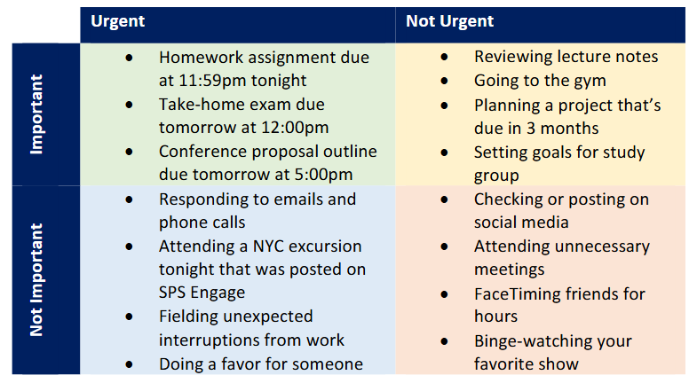 Action item: List every assignment, exam, reading, and whatever else that is on your task list. Sort them into the four quadrants shown below.